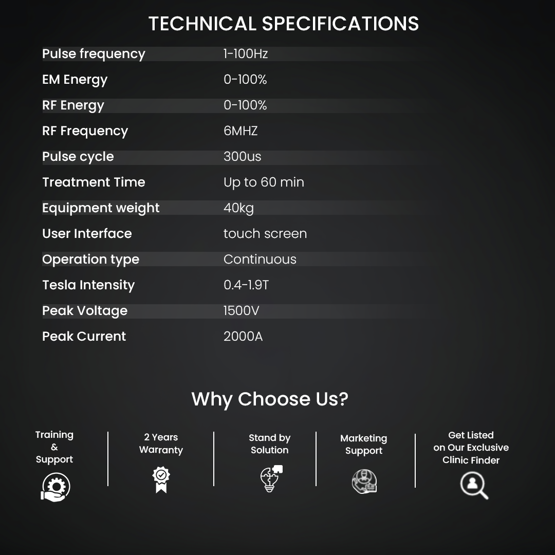 This technology is clinically validated, safe, and painless, making it ideal for men and women experiencing urinary incontinence, post-pregnancy pelvic weakness, menopause-related pelvic muscle decline, or prostate-related pelvic issues.
