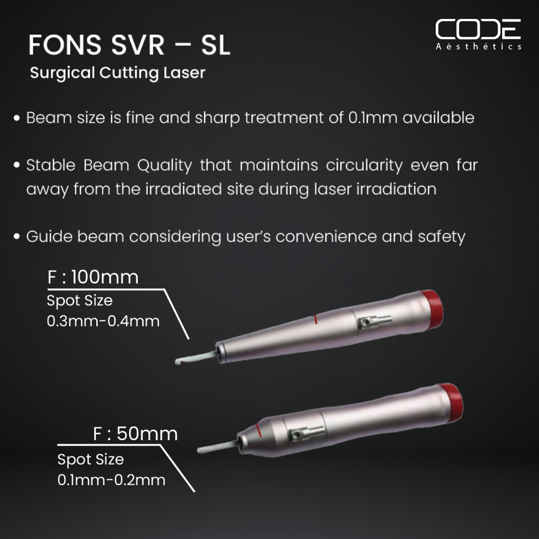 The FONS-SVR by Code Aesthetics is a state-of-the-art CO₂ fractional laser system designed to deliver precision treatments for vaginal tightening, stress urinary incontinence (SUI), and skin rejuvenation. Utilizing a 10,600 nm wavelength, it provides controlled laser energy for safe, effective, and minimally invasive procedures with minimal downtime.