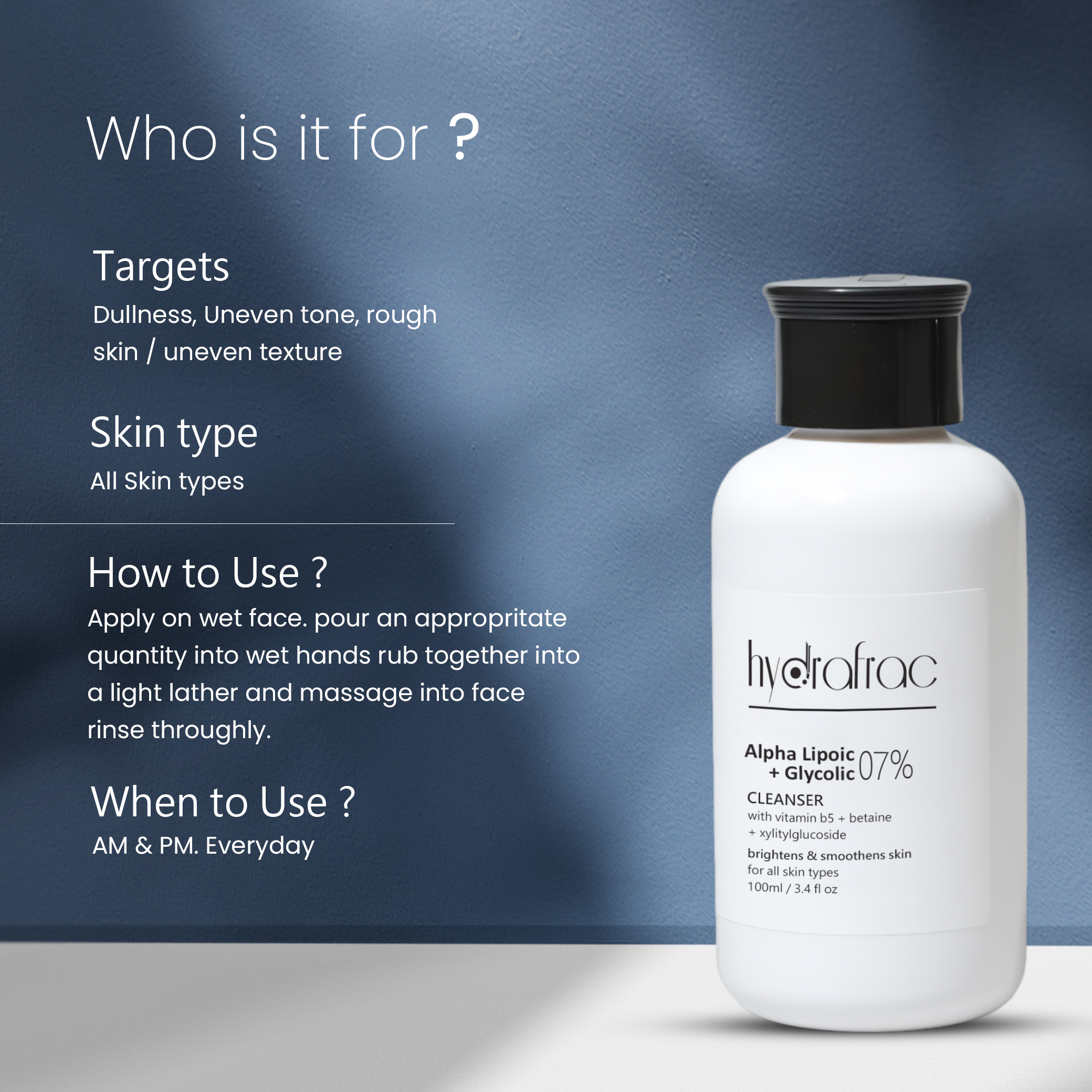 HydraFrac Alpha Lipoic + Glycolic 7% Cleanser Daily Brightening & Exfoliating Face Wash