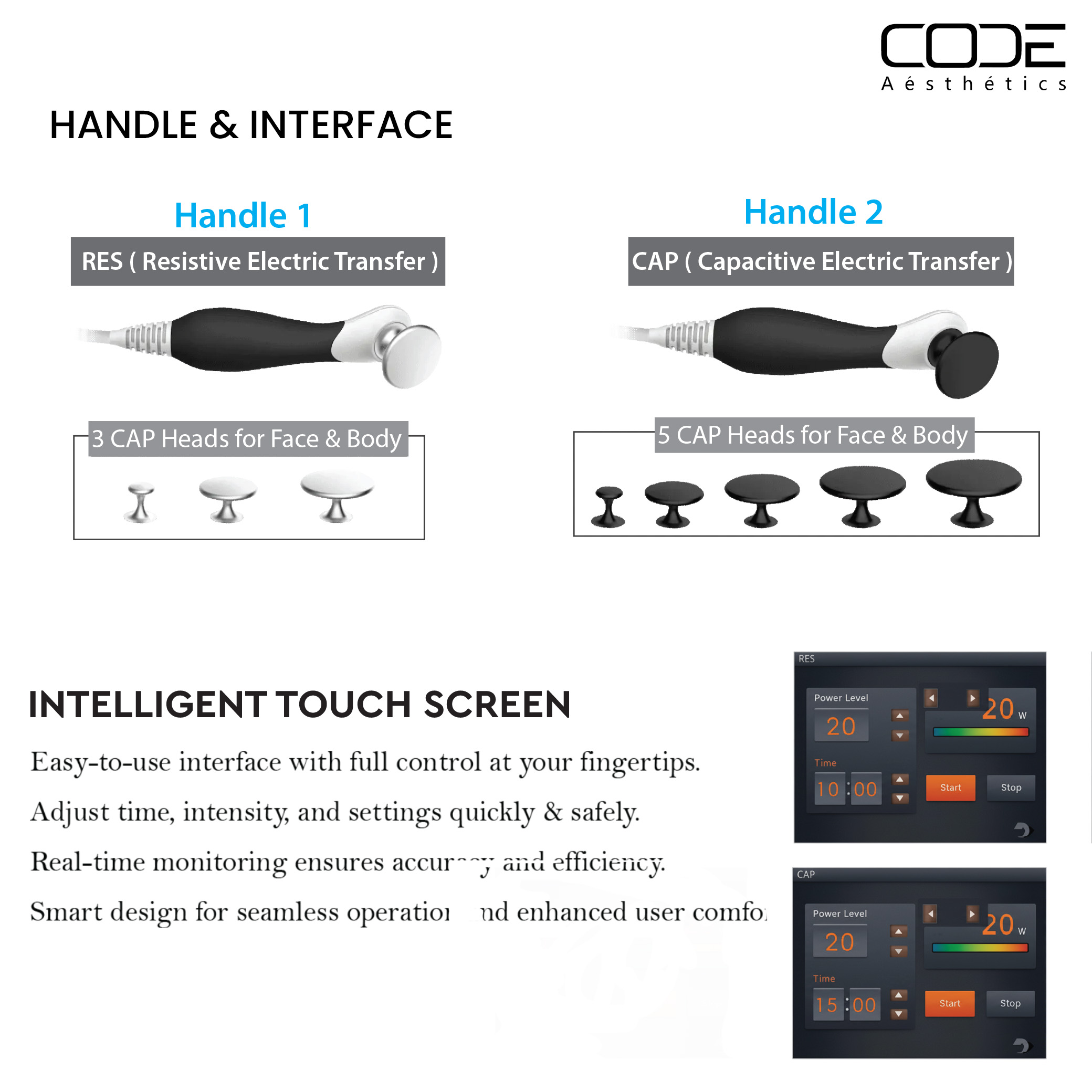 | Handpieces | Ergonomic design with interchangeable electrodes |