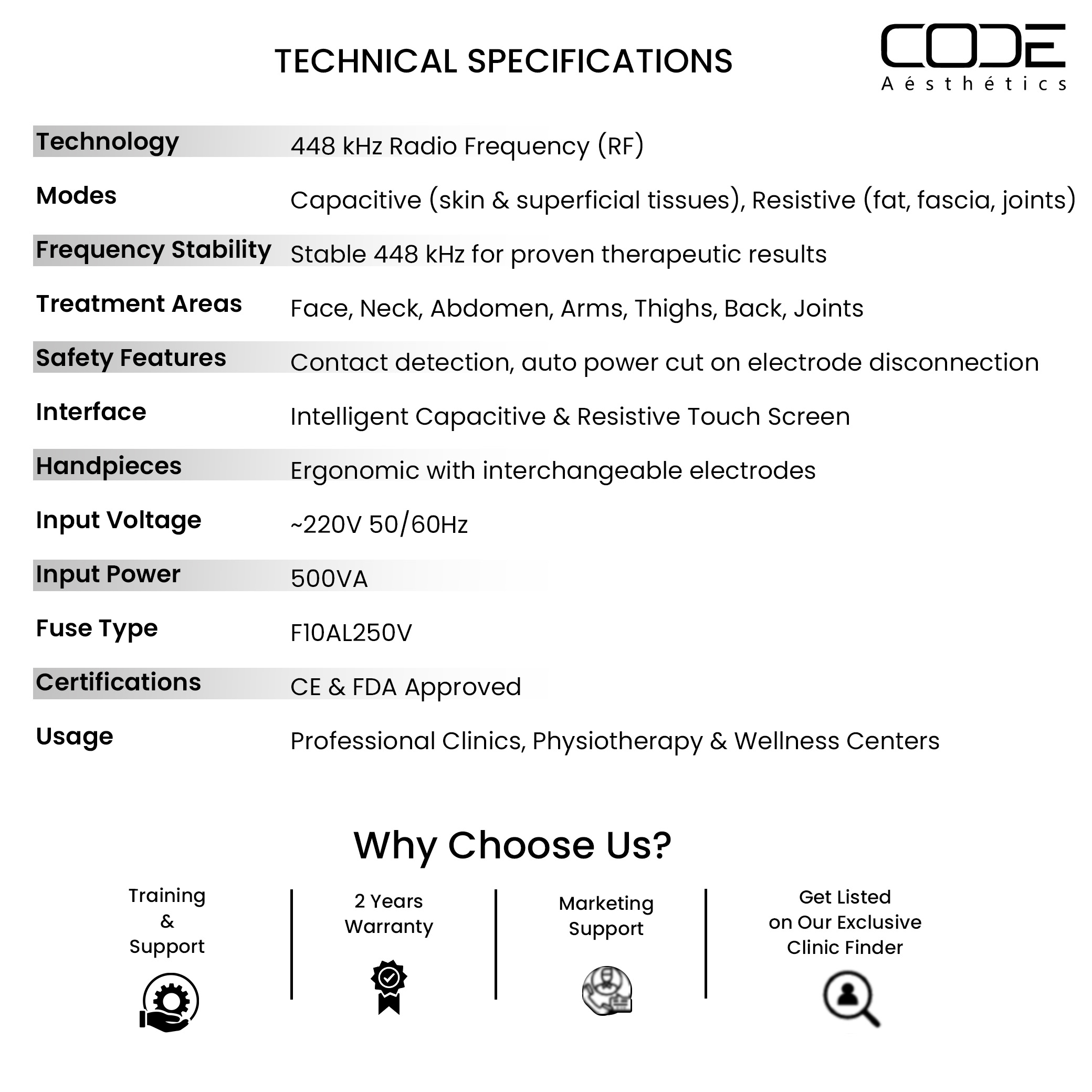 | Usage | Professional Clinics, Wellness Centers, Physiotherapy & Aesthetic Practices |