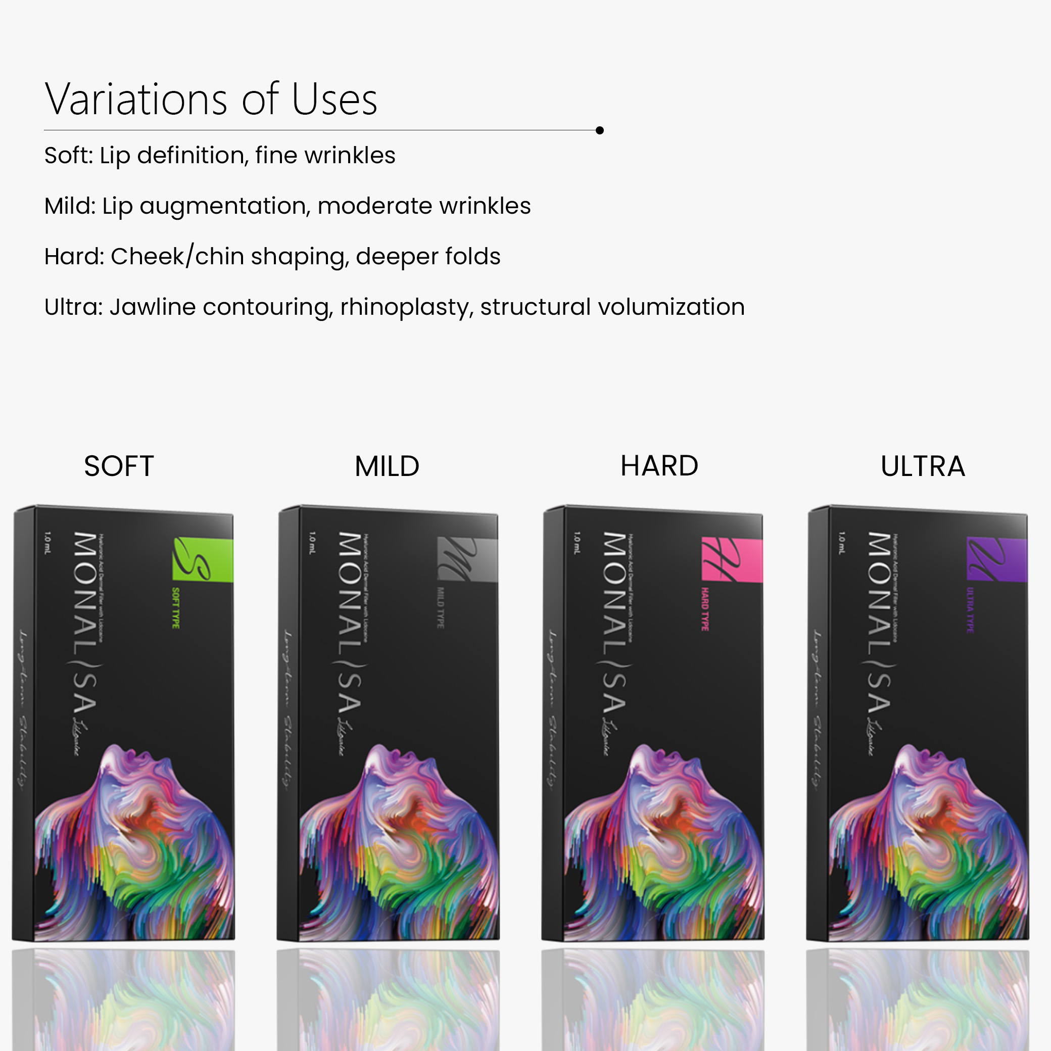 Results typically last between 9–18 months, depending on the variant used, the treatment area, and the patient’s metabolism. Ultra variants generally provide longer-lasting volumization compared to Soft or Mild.
