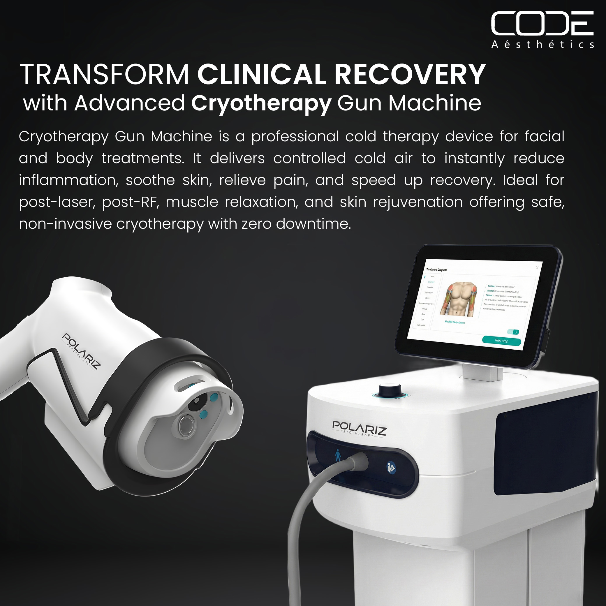 Polariz Cryotherapy Gun Machine for Facial & Body Recovery | Cold Therapy Device for Hospitals, Wellness Center & Physiotherapy Clinics