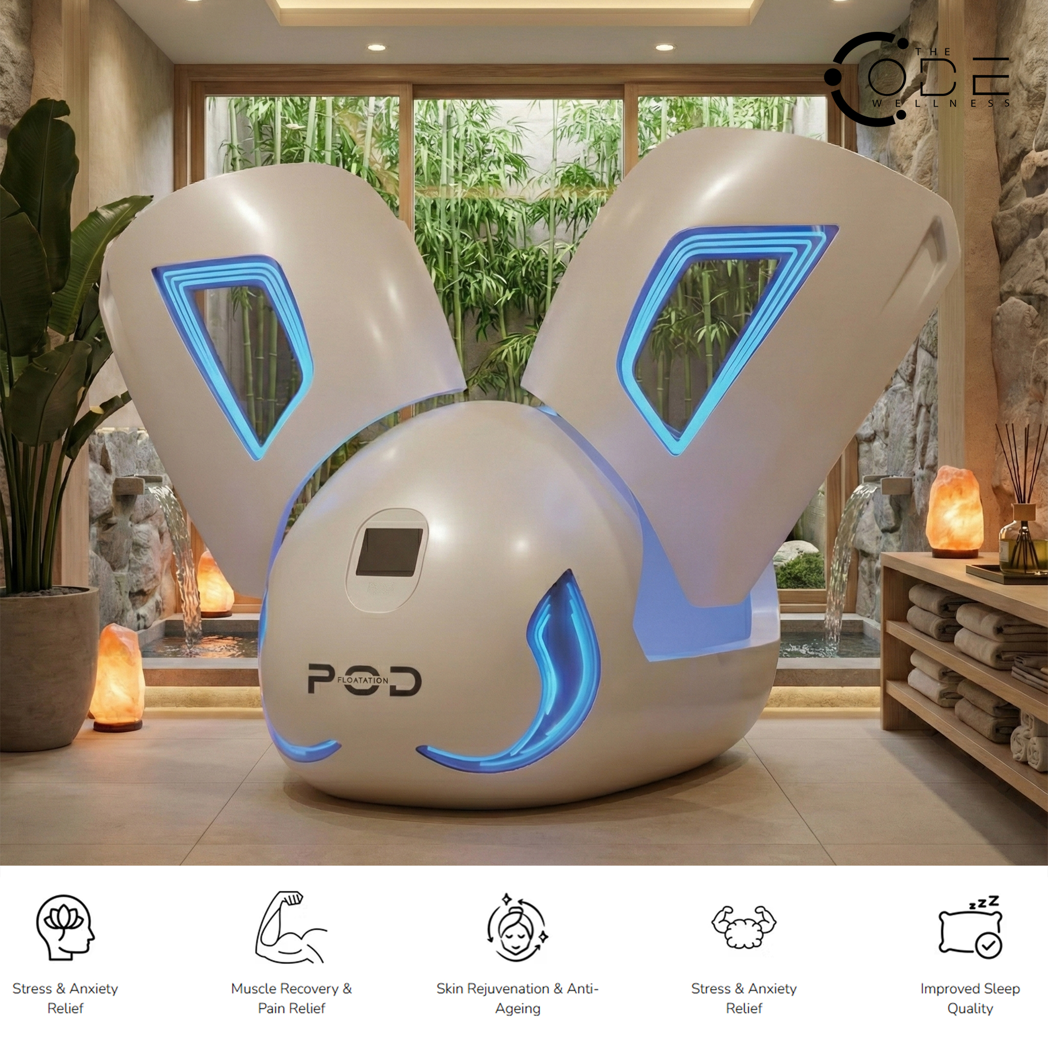 The Sensory Deprivation Tank promotes multiple wellness benefits, including: